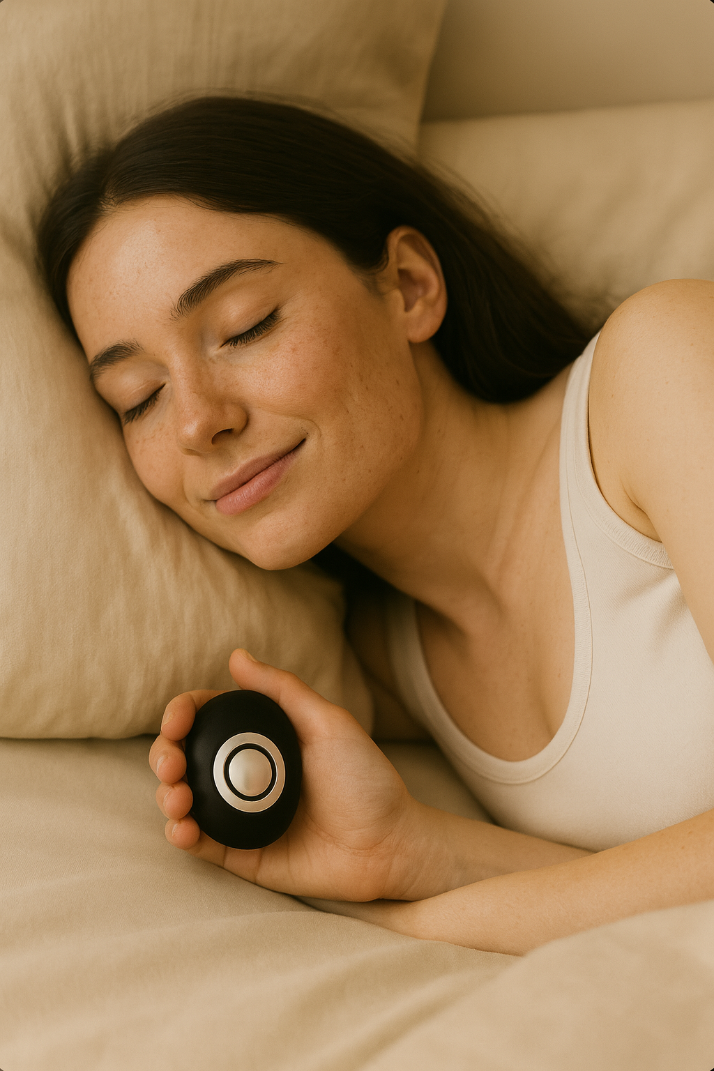 Le dispositif Luno utilise une technologie de micro-courants doux, sans produits chimiques ni dépendance, pour apaiser naturellement votre système nerveux.